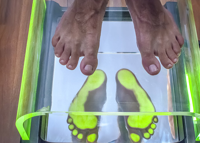Le bilan podologique avec notamment l’impression de l’empreinte du pied en étant debout (statique) et par la suite en état de marche (dynamique) laisse transparaître les éventuels dysfonctionnements liés aux pieds et à leur adhérence au sol.
